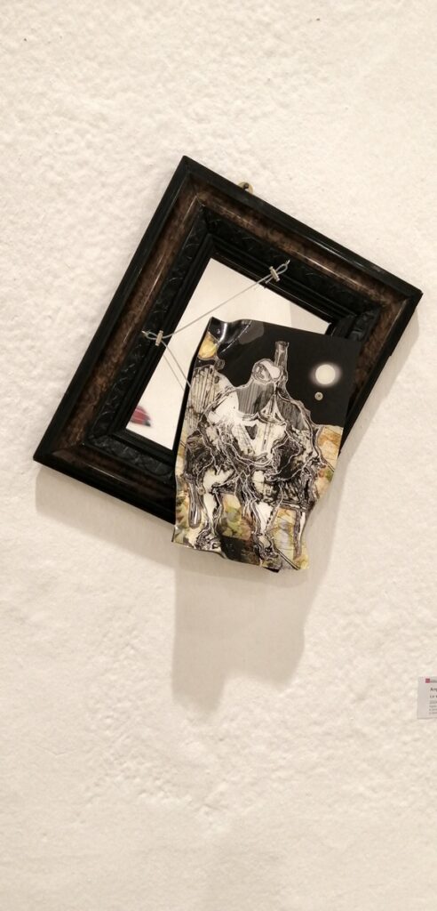 “Lo Spazio riaffiora” (ottobre 2024) (Digital painting stampata su lastra di plexiglass termodeformato di cm 20 x 30 assemblato su una cornice sagomata e laccata primi ‘900 di cm 30 x 40 con fondo di plexiglass a specchio)