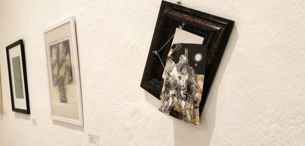 A tal fine mostriamo allora le opere d’arte appese a un filo con l’intenzione di proporre quello che di più bello abbiamo creato, senza la paura che tutto ci possa piovere addosso.