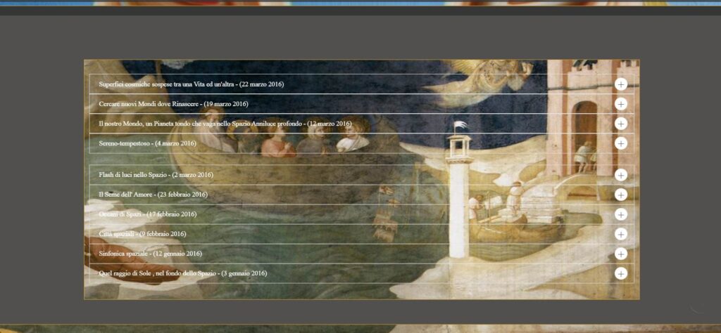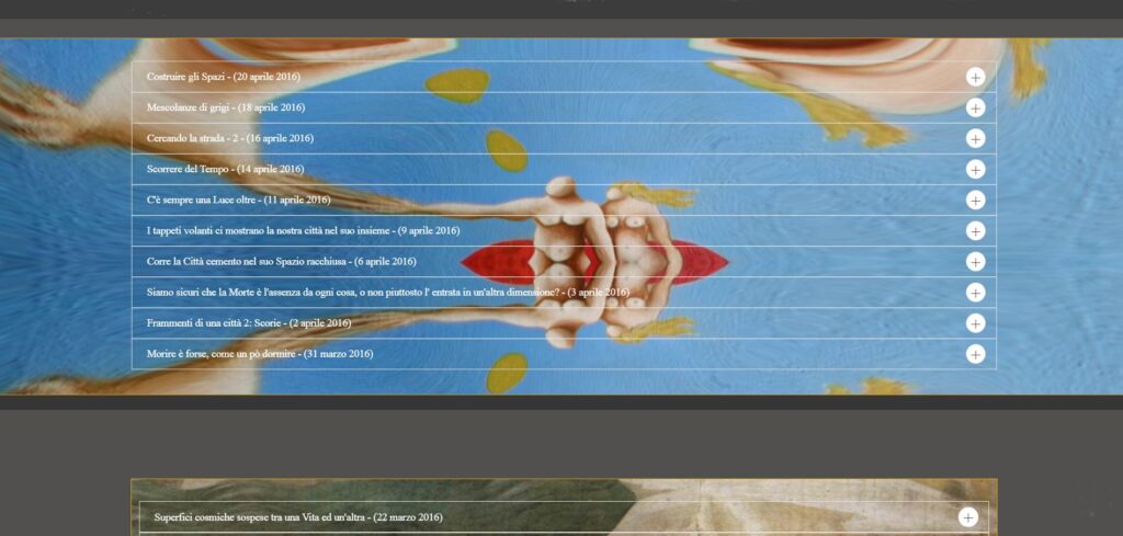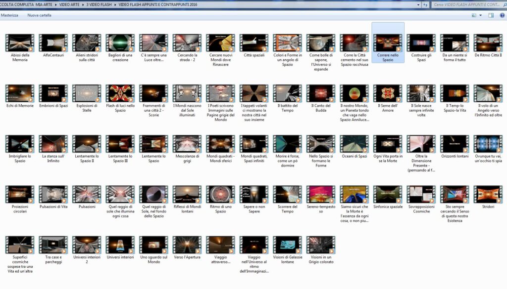 La miglior cosa forse è, guardarla e lasciarsi andare alle sue immagini e suoni.Tutta la mia VideoArte penso, possa essere paragonata agli antichi affreschi rinascimentali in cui l’Artista raccontava la vita del borgo o del Signore presso cui lavorava.