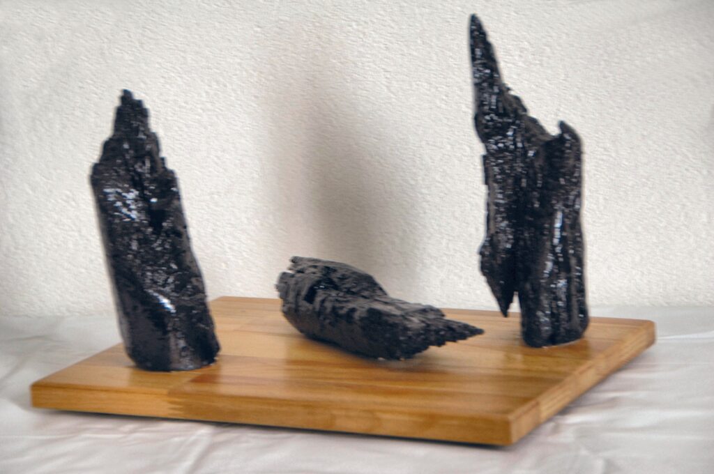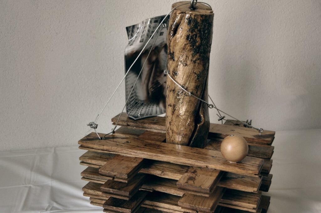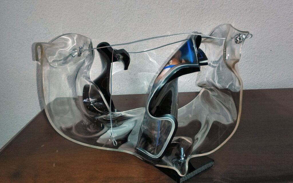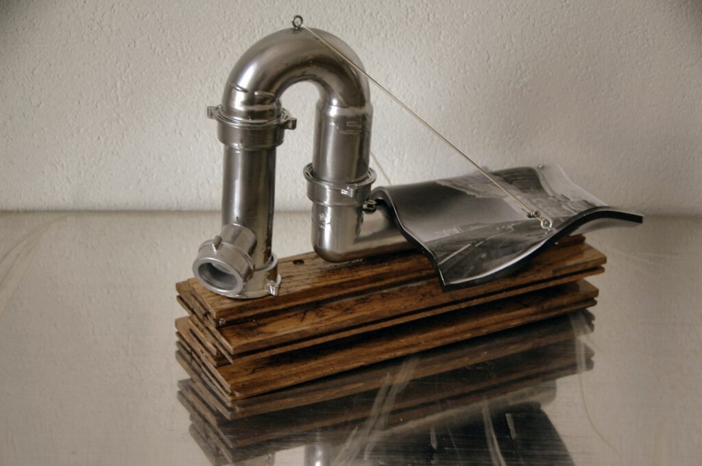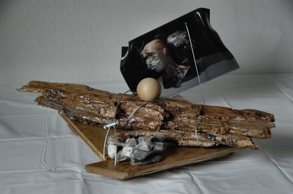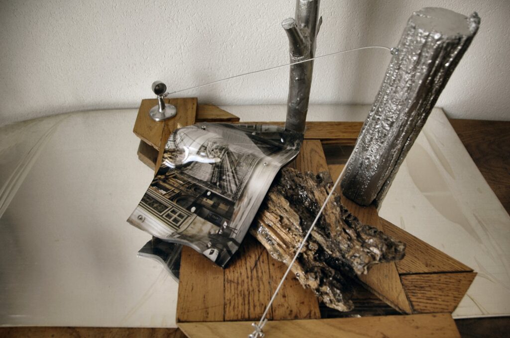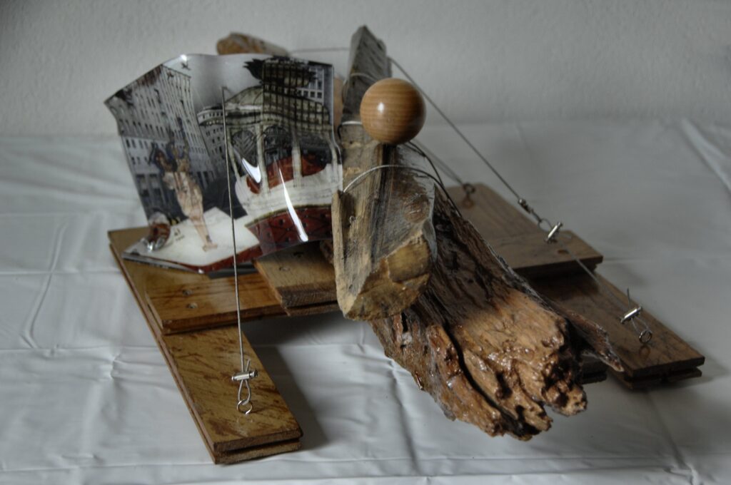 Listelli di plexiglass, fotografie stampate su lastre di plexiglass, termodeformarle con una pistola termica, assemblarle, costruire qualcosa che assomigli ad una scultura, senza essere uno scultore. Incollare e fissare i pezzi; un lavoro a caldo ed interessante…