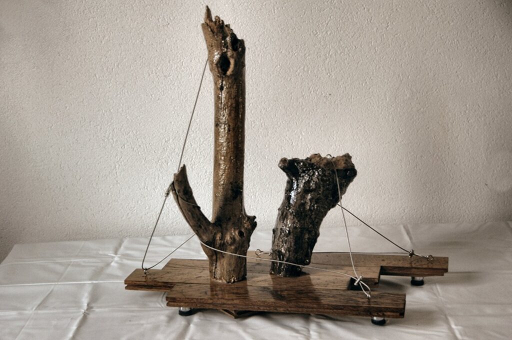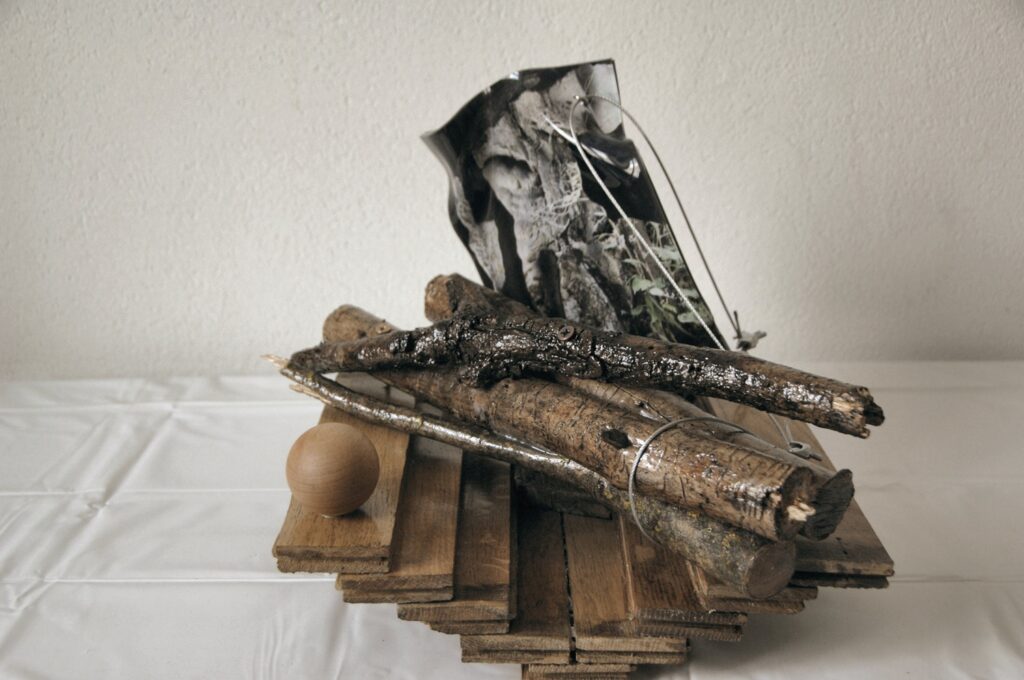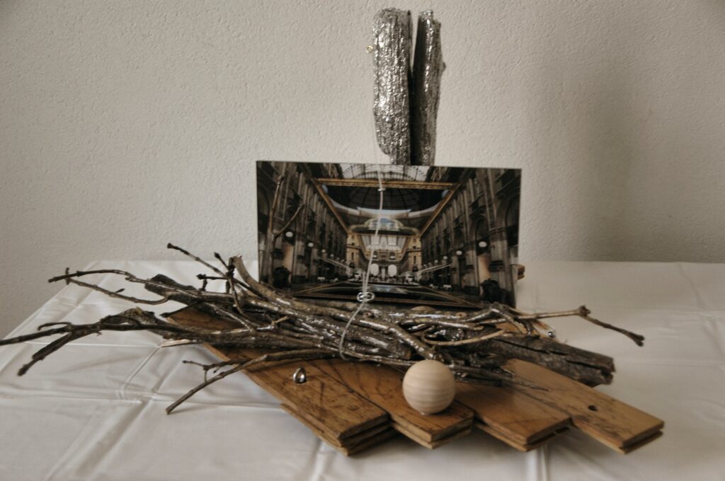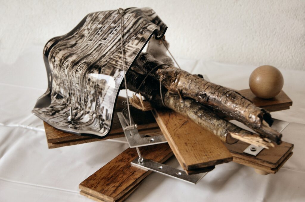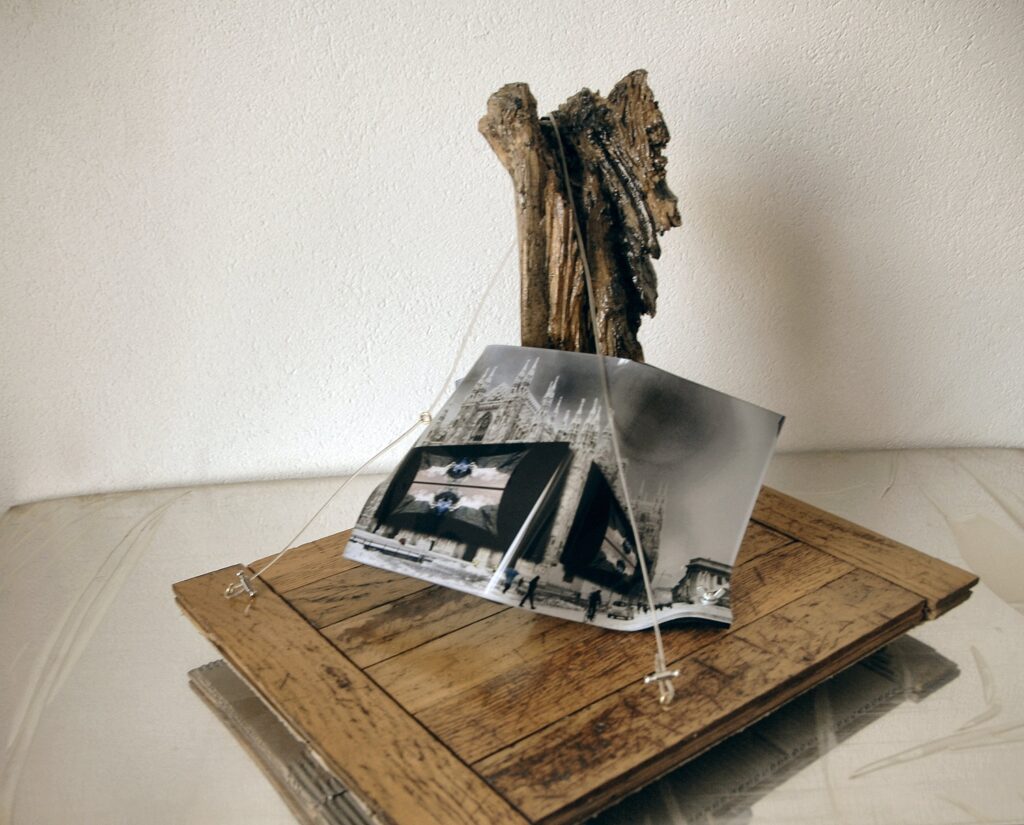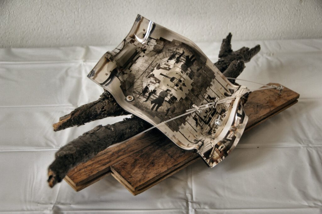 Quindi conclude: <<Assemblando elementi diversi, frammenti d’alberi e foto termodeformate legate insieme da fili d’acciaio, cerco una sintesi e un’unione tra questi elementi, che non sia la negazione dell’uno a discapito dell’altro. Una fotografia sulla reale condizione in cui ci troviamo che aberra le scelte talebane delle attuali politiche cittadine>>.