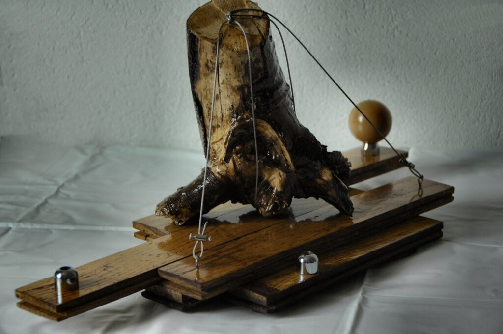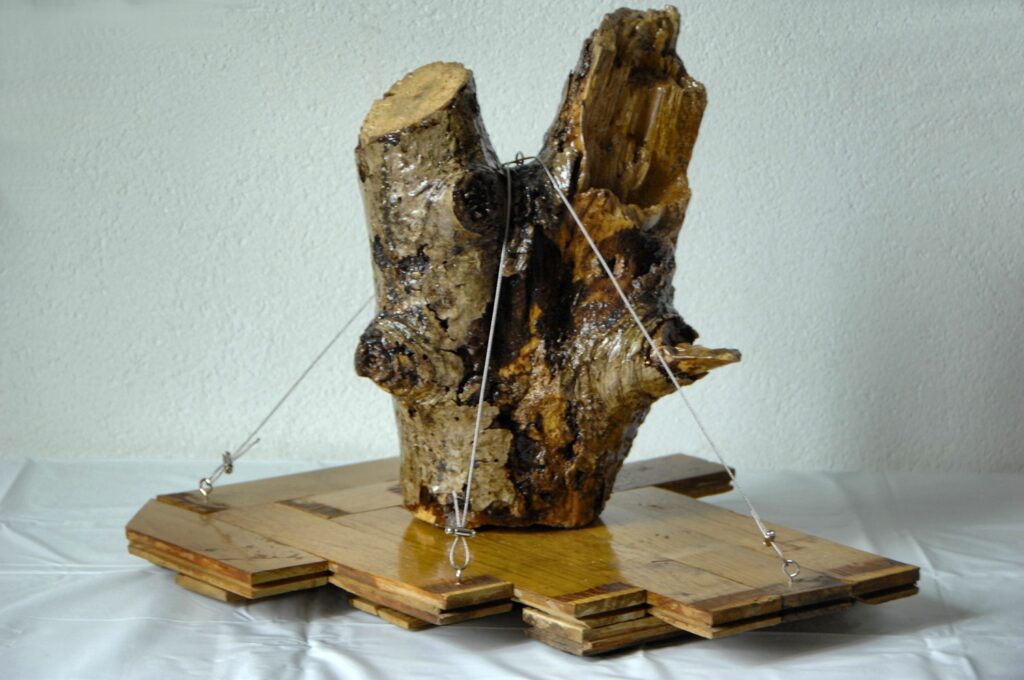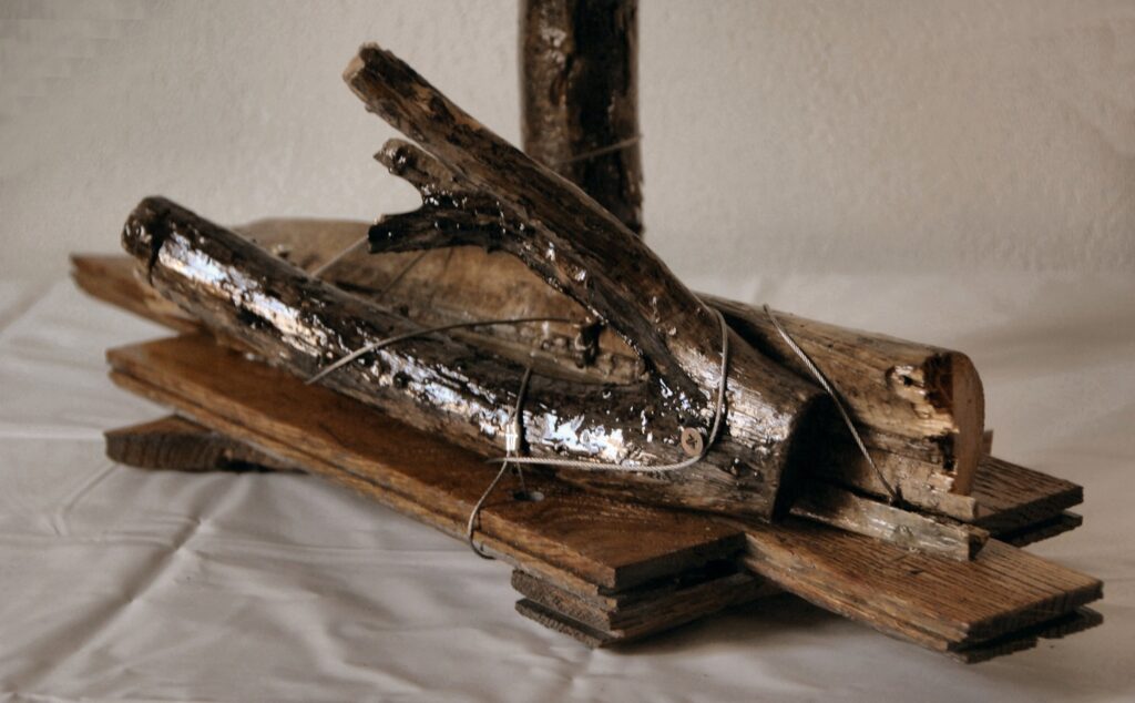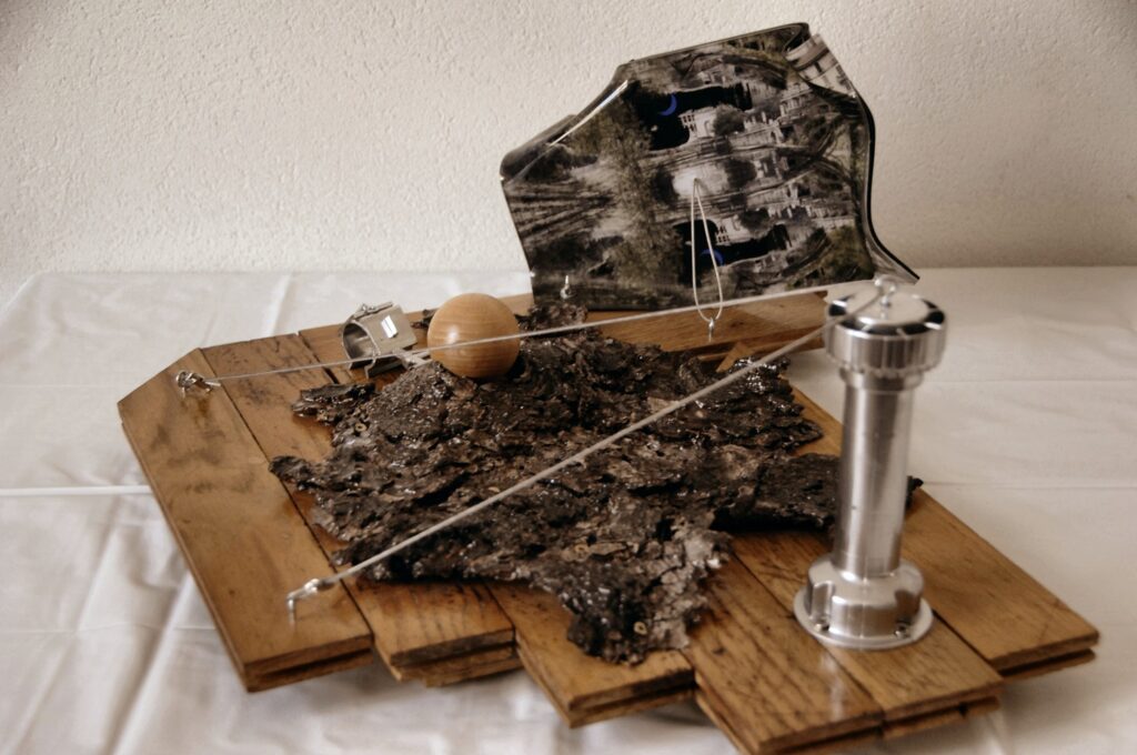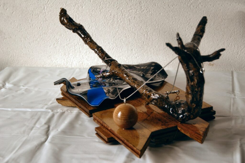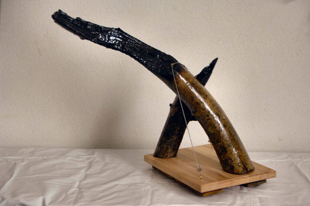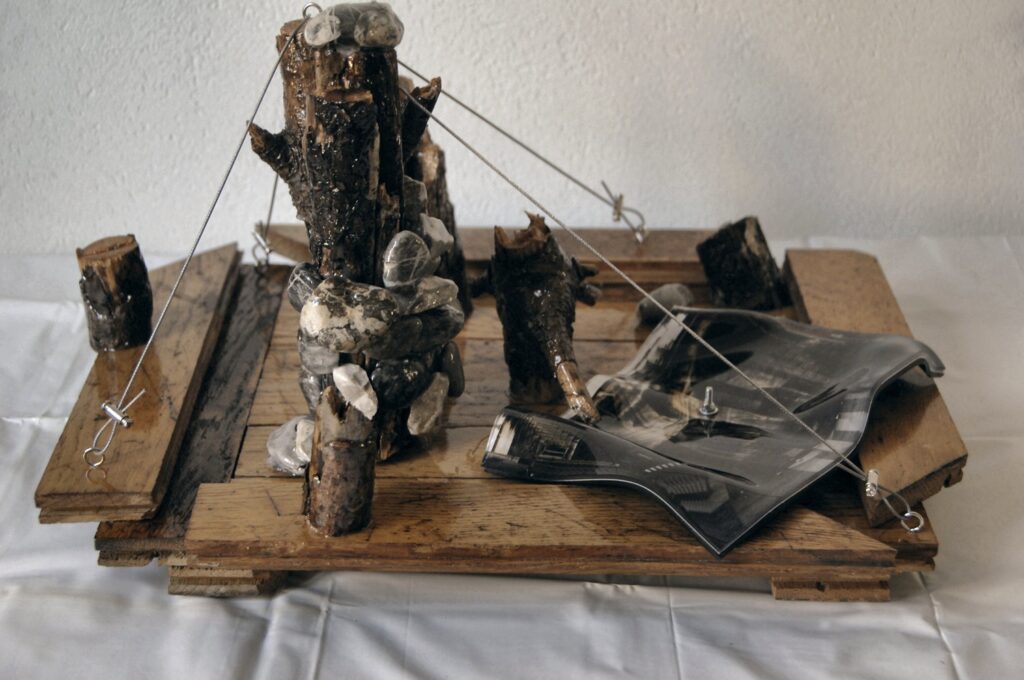 Quindi conclude: <<Assemblando elementi diversi, frammenti d’alberi e foto termodeformate legate insieme da fili d’acciaio, cerco una sintesi e un’unione tra questi elementi, che non sia la negazione dell’uno a discapito dell’altro. Una fotografia sulla reale condizione in cui ci troviamo che aberra le scelte talebane delle attuali politiche cittadine>>.