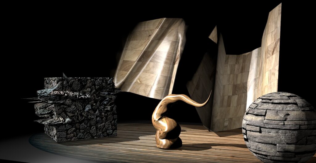 “Elaborazione in 3D – Parque ed insieme di oggetti”