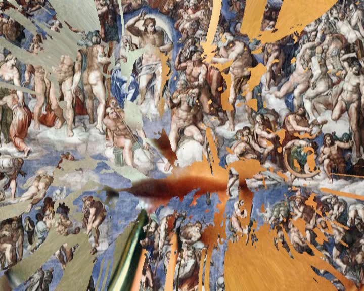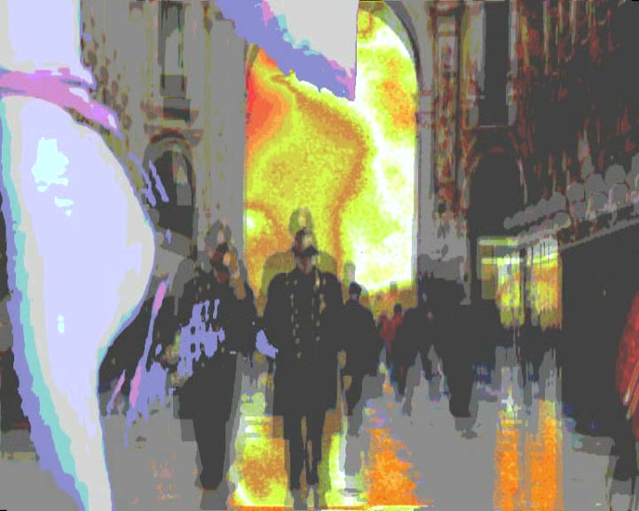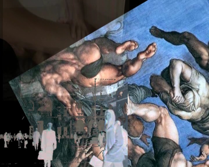La miglior cosa forse è, guardarla e lasciarsi andare alle sue immagini e suoni.Tutta la mia VideoArte penso, possa essere paragonata agli antichi affreschi rinascimentali in cui l’Artista raccontava la vita del borgo o del Signore presso cui lavorava.