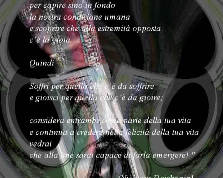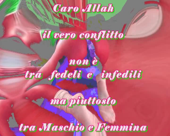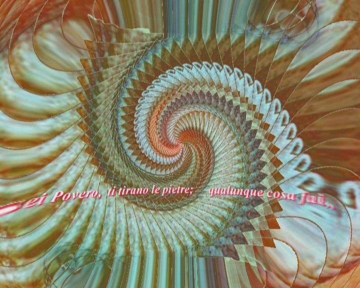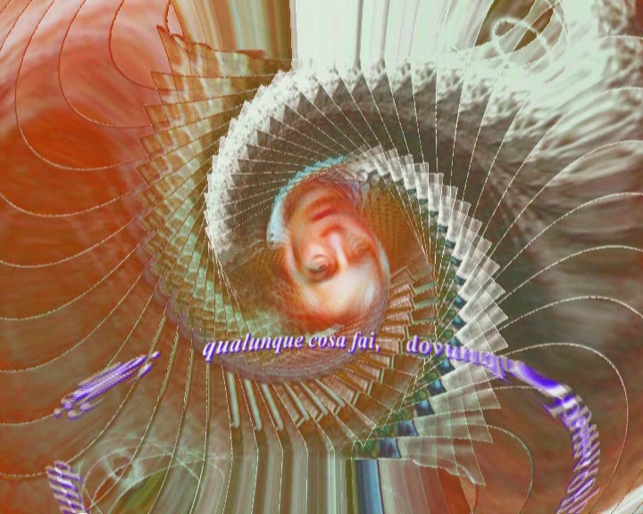 La miglior cosa forse è, guardarla e lasciarsi andare alle sue immagini e suoni.Tutta la mia VideoArte penso, possa essere paragonata agli antichi affreschi rinascimentali in cui l’Artista raccontava la vita del borgo o del Signore presso cui lavorava.