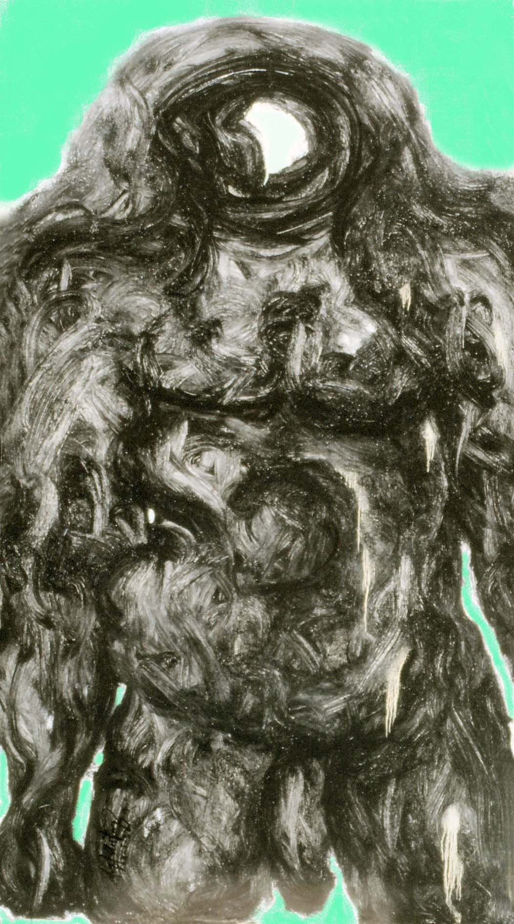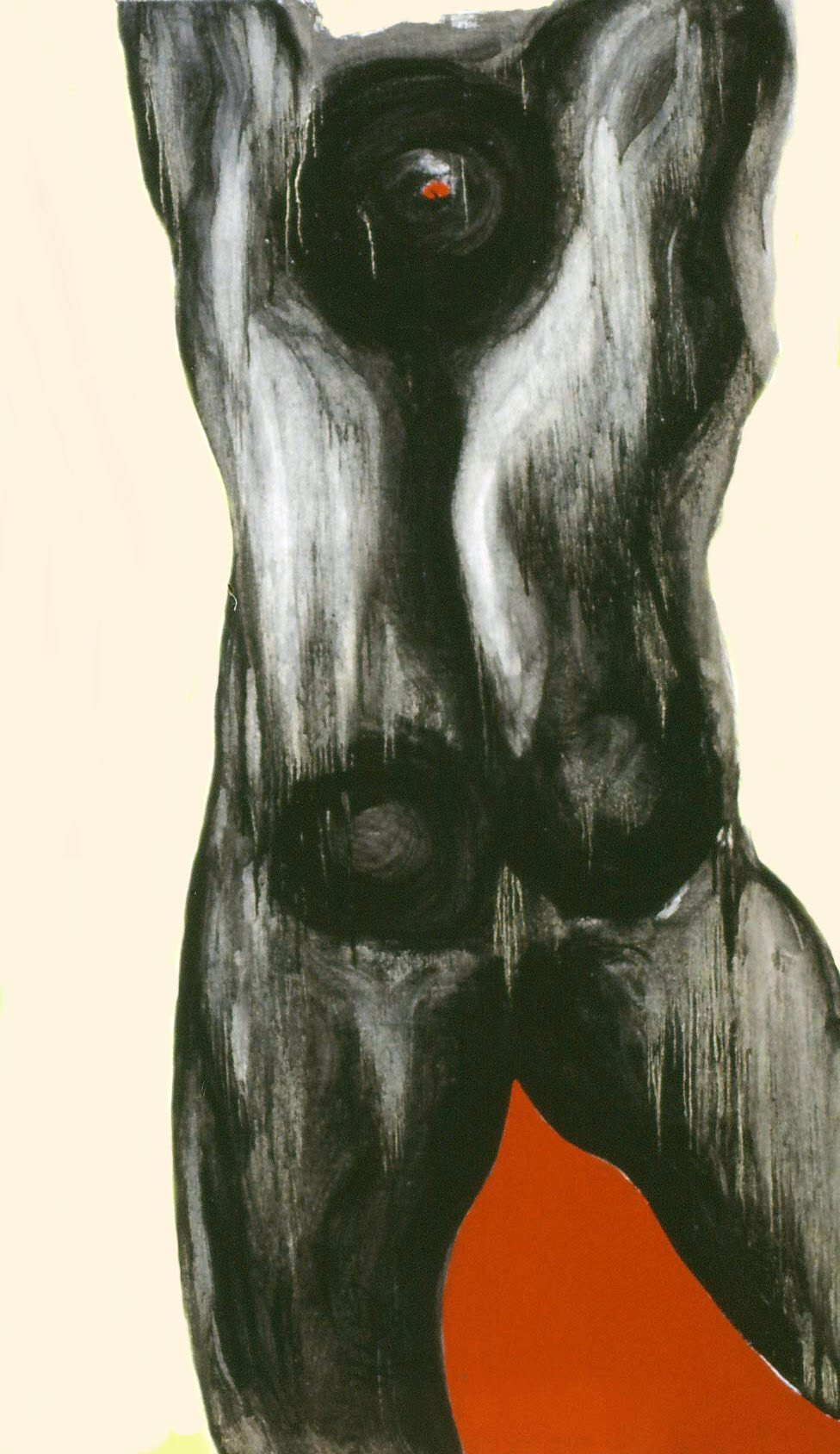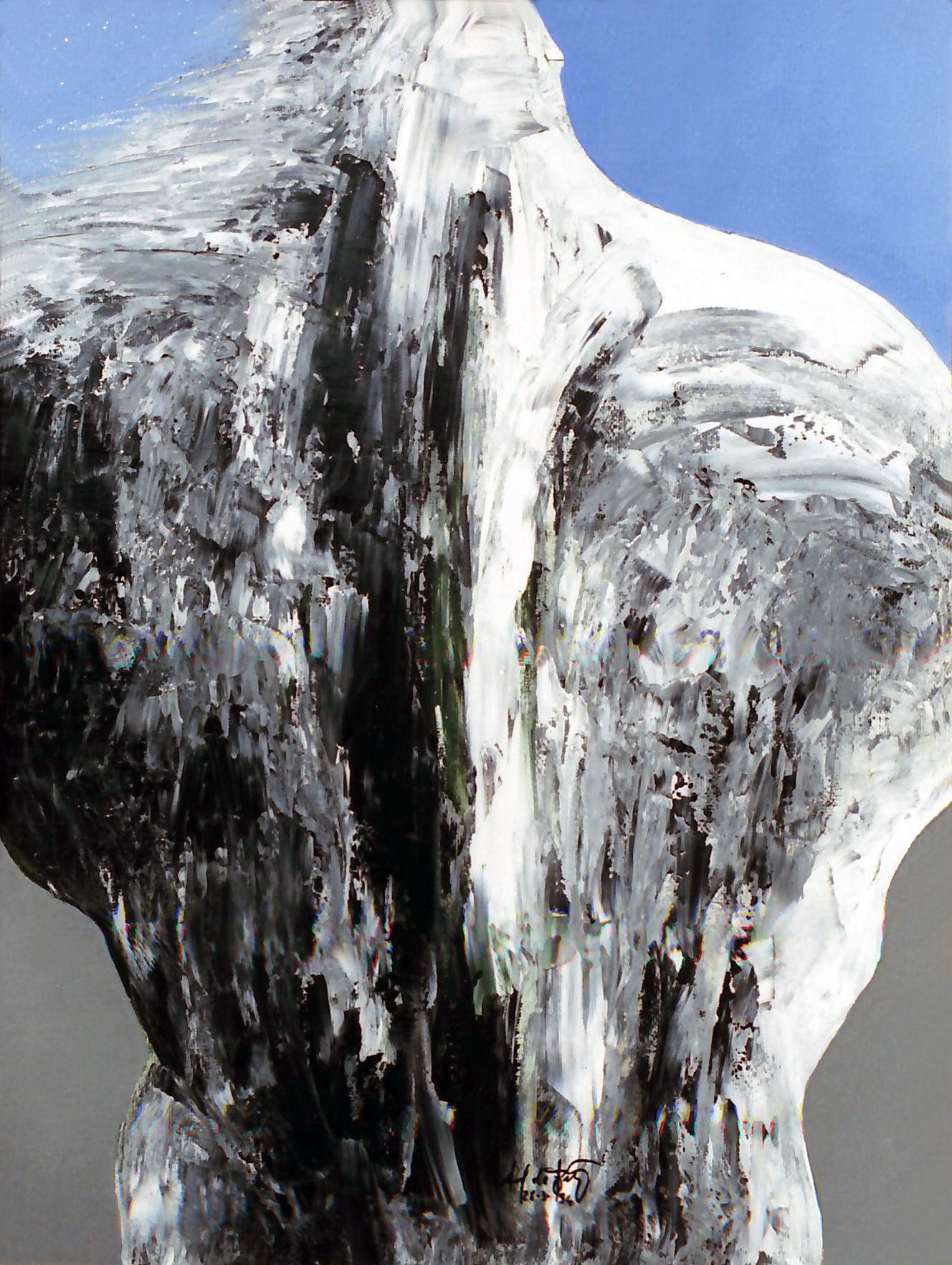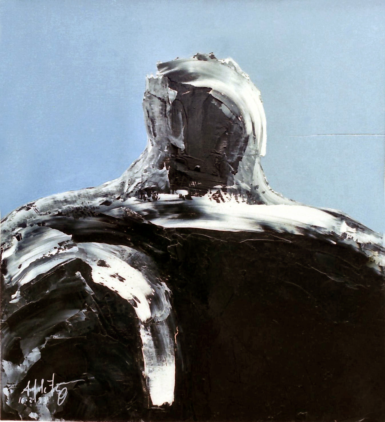 Nel Ciclo successivo, però, ritorna alla pittura ad olio che aveva momentaneamente abbandonato, con una pennellata più fluida e quasi stinta, simile all’acquarello. I soggetti sono ancora corpi o torsi di persone, dove il pennello, ma spesso la spatola usata a guisa di scalpello, ne “sbrandella“ la forma e scava all’interno di quella sagoma, come a significare che il dramma che agita la figura è solo all’interno di quell’io, di quel soggetto, non fuori da lui. A questo punto si mescolano colori e luci e ombre, a neri e bianchi, i quali si fondono e stridono in grigi multicolori. La pittura si fa astratta, all’interno di una sagoma figurale dal contorno ben delimitato; si fa musica cacofonica dalle note squillanti, chiare; diviene grido, consapevolezza nella sua essenza di vita; la pittura, infine, si fa coscienza dell’artista che la crea.