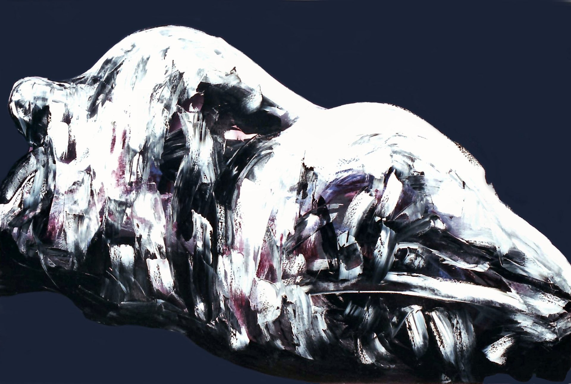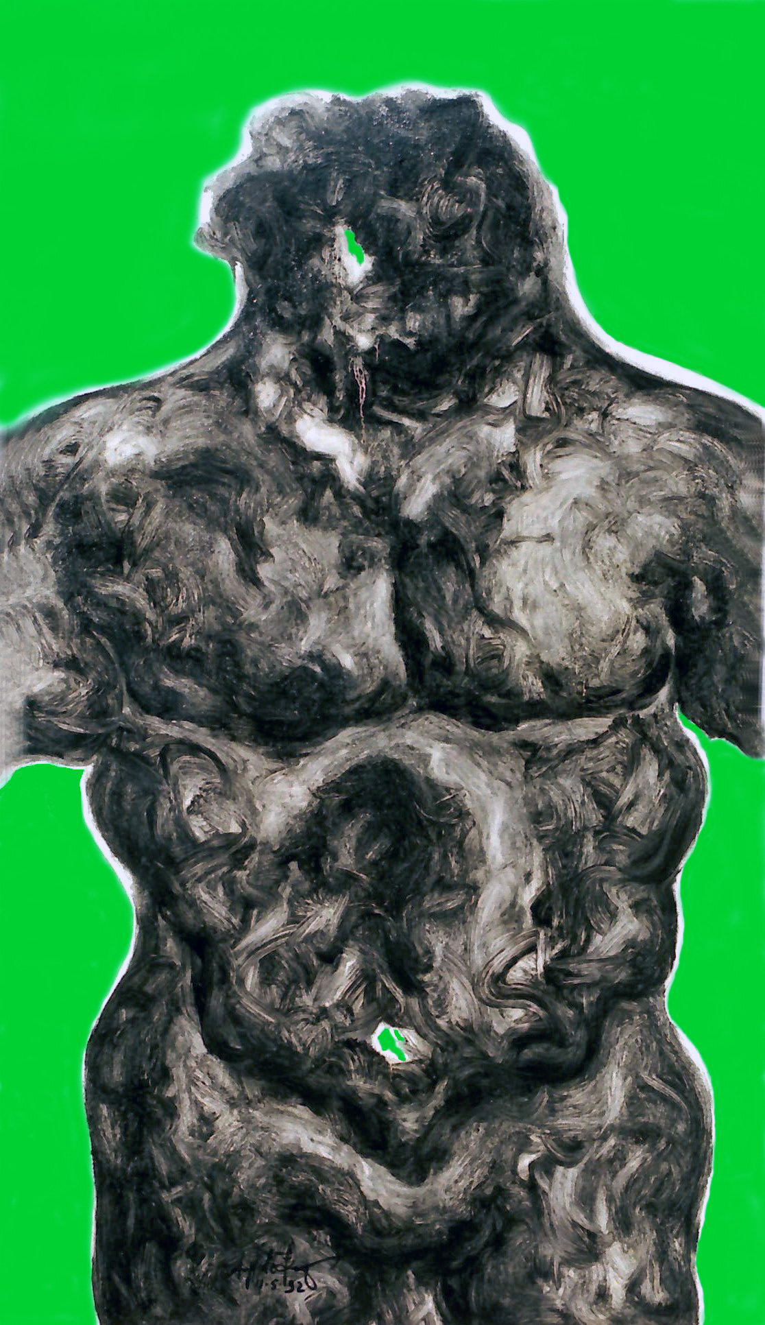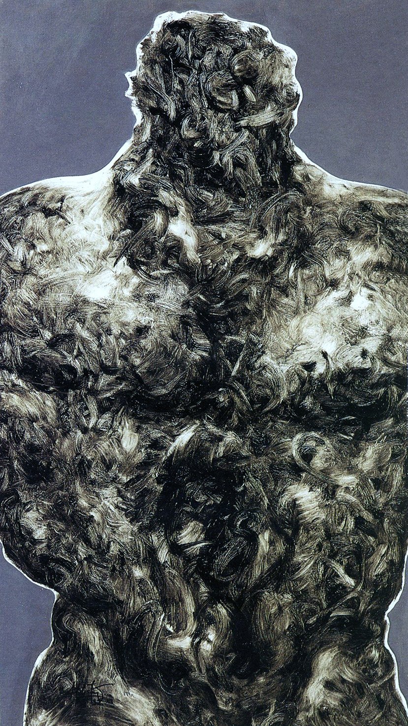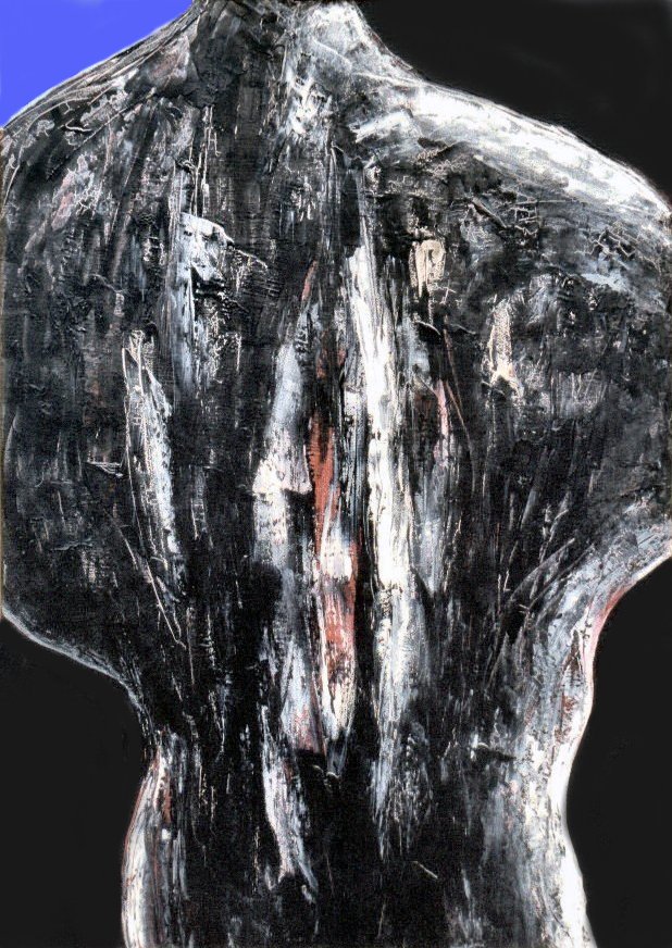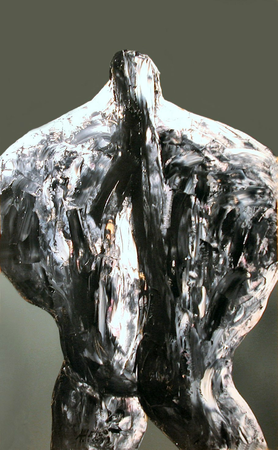 «Dapprima» precisa, «dipingevo figure contorte, di una muscolarità che fuoriusciva dalle forme anatomiche per gonfiarsi di una rabbia che repressa esplodeva sulla pelle, continuamente spezzata da un chiaro-scuro volumetrico.