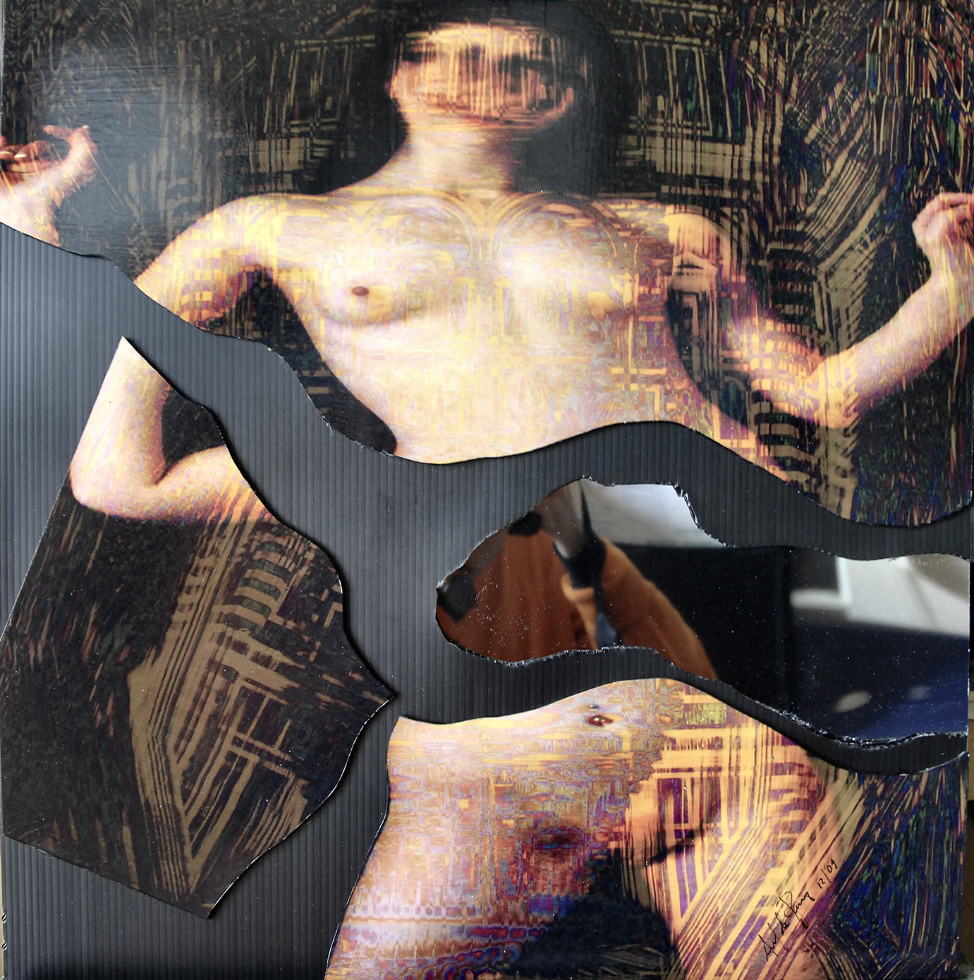 L’opera si configura come un’ esplorazione ardita e complessa della contemporaneità, realizzata attraverso un linguaggio visivo che sfida e stimola l’ osservatore. L’ artista, con l’ uso sapiente della tecnologia e dei materiali moderni, crea un’ opera che oscilla tra l’ astratto e il figurativo, tra il caos e l’ ordine, riflettendo le contraddizioni e le ambiguità del nostro tempo. La composizione è un caleidoscopio di colori vivaci e linee dinamiche, che si intrecciano e si sovrappongono in un groviglio di forme fluide e cangianti.