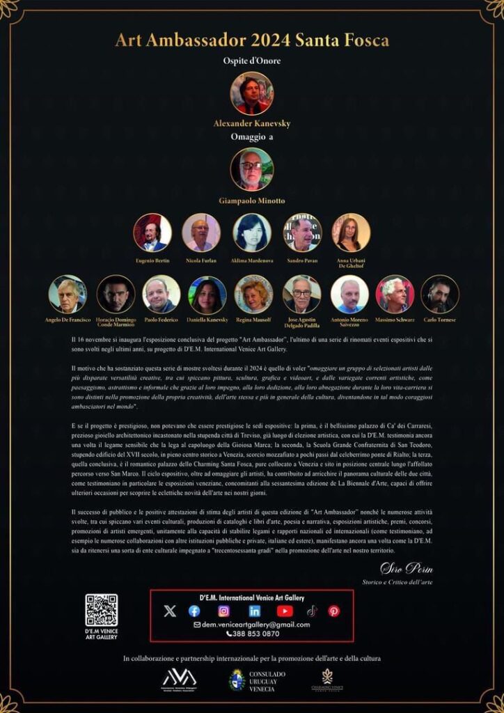 “Art Ambassador” – D’E.M. International Venice Art Gallery – presso Charming Santa Fosca – Venezia