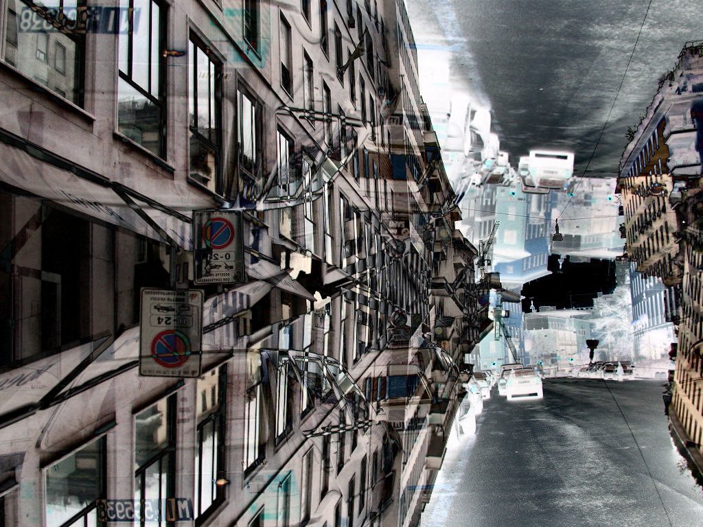 Artista a pieno titolo, vorremmo dire, perché nella loro irriducibile diversità, queste opere parlano ancora di segno e di colore, dove la sovrapposizione e la deformazione delle immagini giocano otticamente creando panorami nuovi, leggibili come metamorfosi in divenire, e tanto più veritieri quanto più si discostano dalla loro originale funzione descrittiva. Così la serie Città–oltre l’immagine, mostra un universo fluttuante e fantasmagorico, assai prossimo a uno stato d’animo, a un’impressione visiva lacerata da stimoli cromatici, luminosi e sonori. Armonie dissonanti di clacson e di fari, architetture che si moltiplicano in fughe prospettiche, presenze umane grigie, o grandi fantasmi femminei che si stagliano come irraggiungibili oggetti di desiderio sui muri di una città impastata di colori artificiali. Ironia e disincanto pervadono queste composizioni, straziando le forme neoclassiche in immagini caleidoscopiche che ricordano le anamorfosi barocche. Allo stesso modo la serie dedicata alle Olimpiadi of Cina, dove la forma umana è resa in tutte le possibili posture legate alle discipline sportive, l’occhio dell’osservatore vede soprattutto macchie di colore e forme dinamiche in fuga prospettica, composte quindi non solo secondo le scansioni visive dell’espressionismo astratto, ma anche rimandando alla cultura della pop art angloamericana, dove il reale si scarnifica e si vanifica nella reiterazione e nella variazioni cromatiche di una stessa immagine.