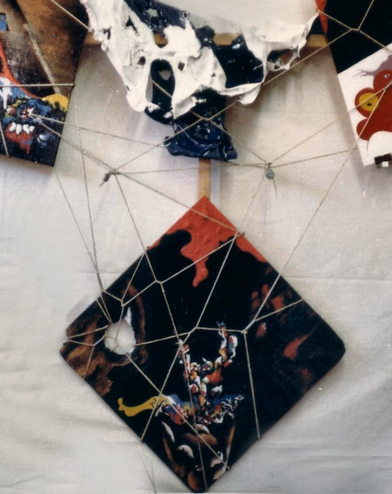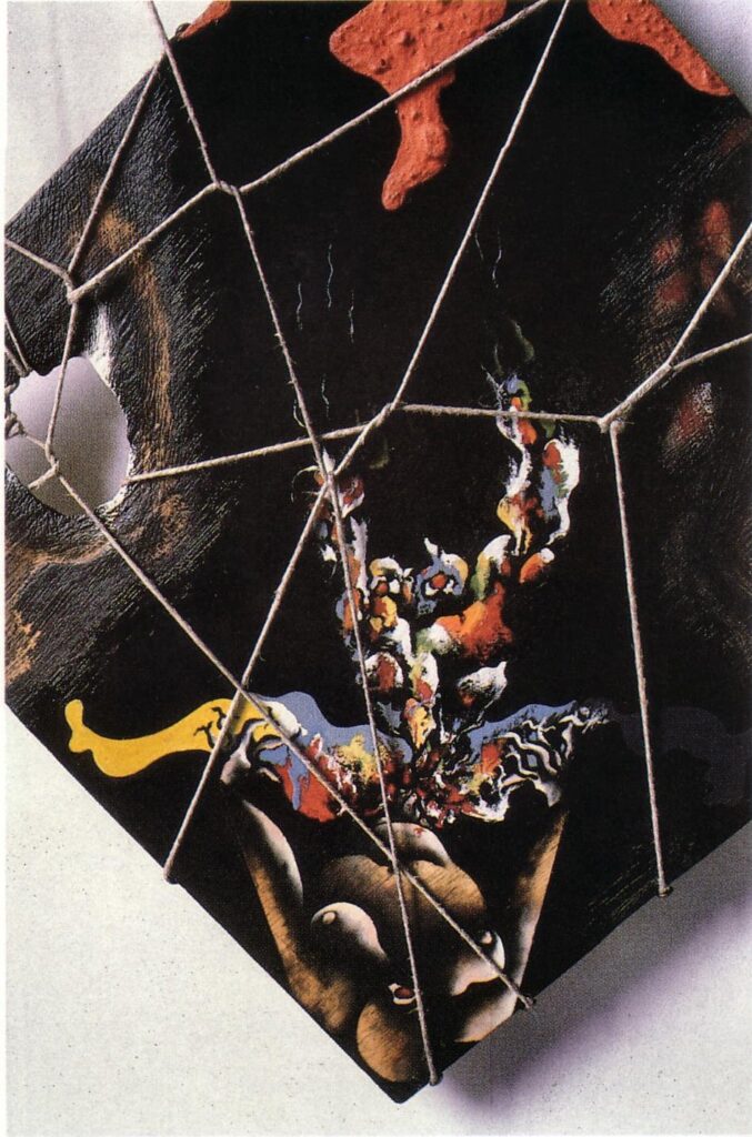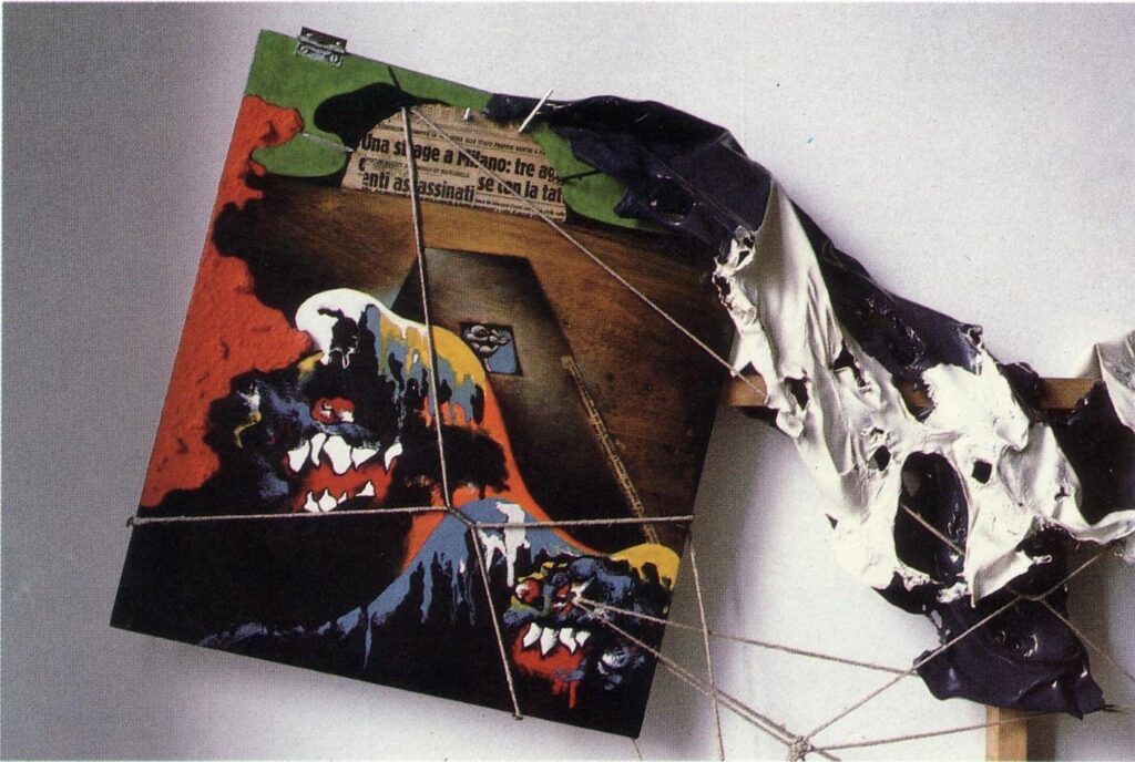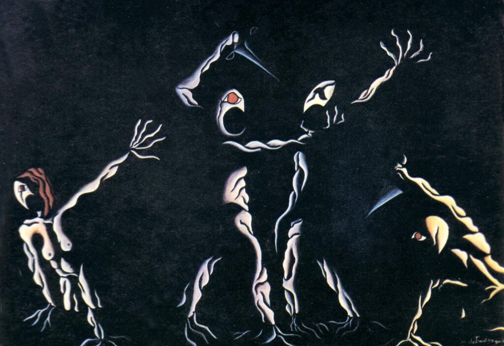 Quelle masse informi, quegli strati di amorfa e come calcificata cromia, hanno preso nel secondo momento creativo, una fisionomia, uno spessore, configurandosi in grovigli urlanti dalle tonalità quasi sempre esangui e fuligginose. Ne è venuto fuori un mondo in bilico tra l’onirico e l’astratto, contrappuntato di balenanti atmosfere surreali, che rammentano l’agghiacciante realismo simbolico di Max Ernst.
