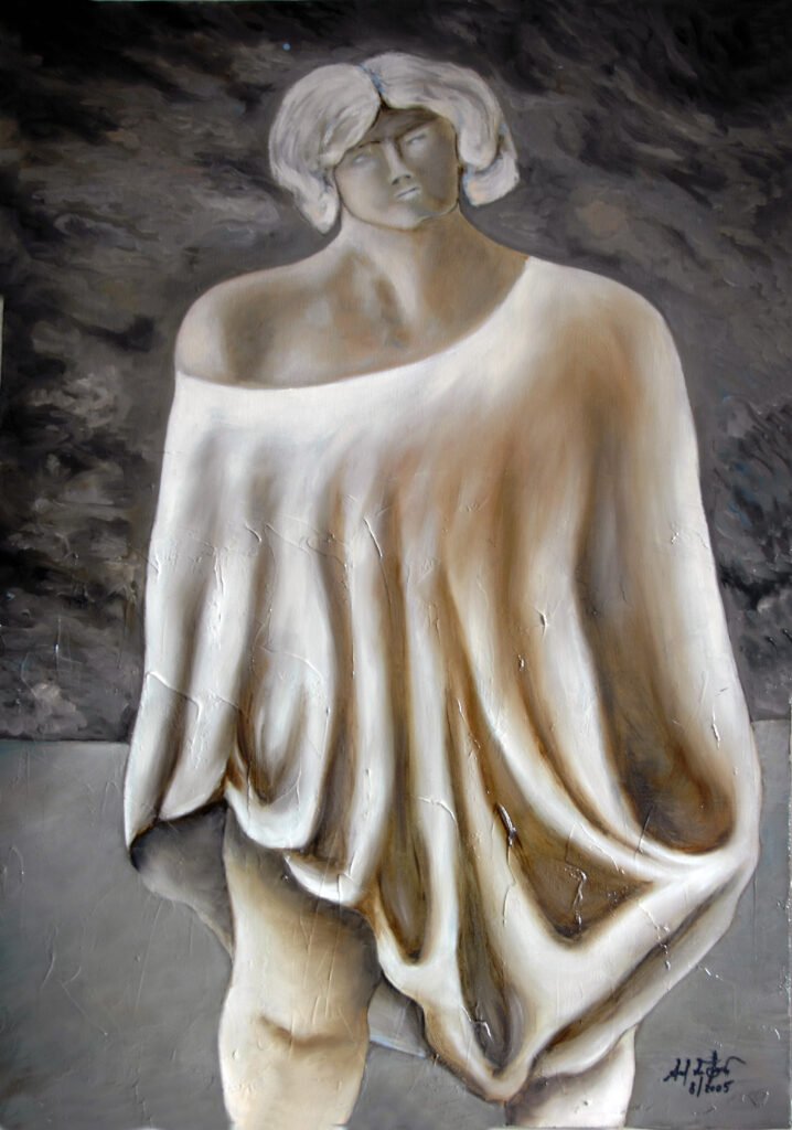 L’arte e la pittura in particolare, sono il mezzo con cui cerca di esprimere, sin dal lontano ‘68, il suo senso di esistere. Le tecniche che usa, legno, smalti, olii, non sono solo strumenti d’ indagine per un discorso più profondo, ma sono anche una sfida nel contemporaneo senza più valori umanistici, nel contemporaneo massificato chiuso nelle fabbriche o negli uffici, alla condizione alienata dell’ uomo che attraverso l’ Arte e il suo operare, può ritrovare una via d’ uscita ai condizionamenti imposti. Utopico e visionario, poeta mimetizzato da comune impiegato, in mostre come “I-o chi, lacerato nella Storia c-e-r-c-o” (1979), “Dalle combustioni plastiche agli automi”, (inizi degli anni ’80), “Ritratti in un fine millennio” (anni ’90), rappresenta questa sua ricerca che il critico Gianni Pre ha saputo ben evidenziare nei suoi saggi.