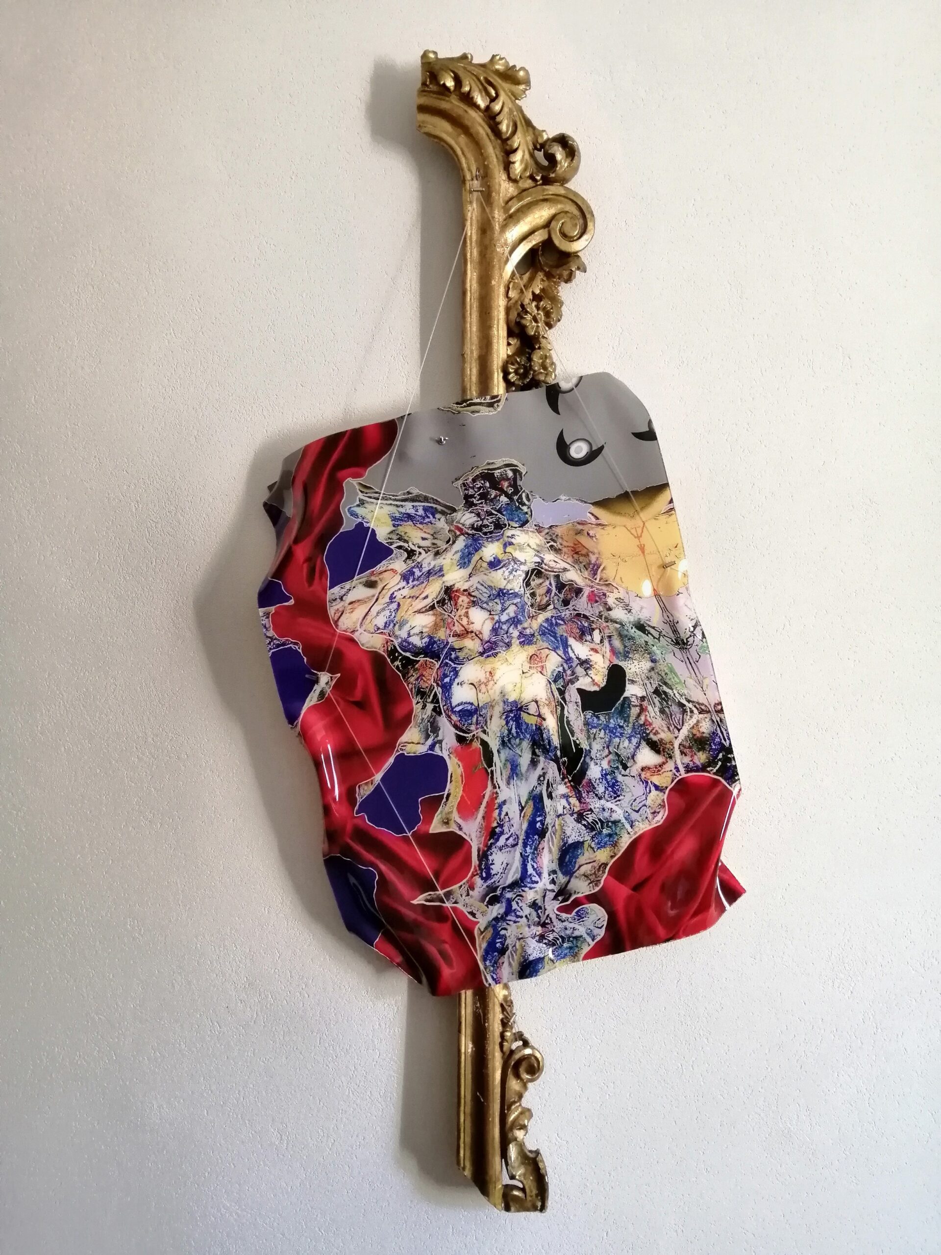 La scelta di integrare un frammento di cornice dorata del tardo Ottocento non è casuale, ma