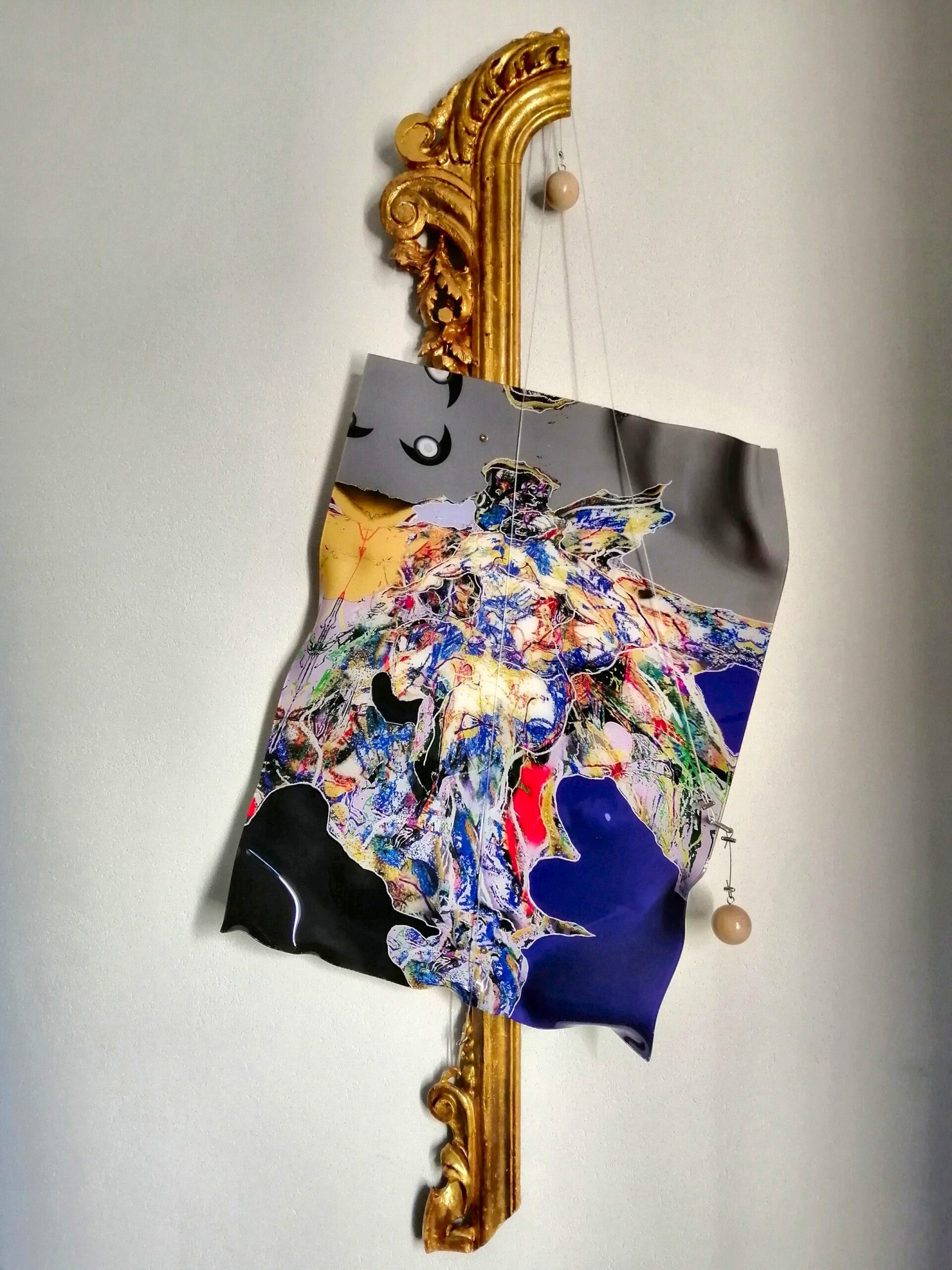 “L’Albero Maestro 2” (novembre 2024) (Digital painting stampata su lastra di plexiglass di cm 60 x 80 termodeformata assemblata con reperto di cornice dorata fine ‘800, di cm 170) (Esemplare unico)