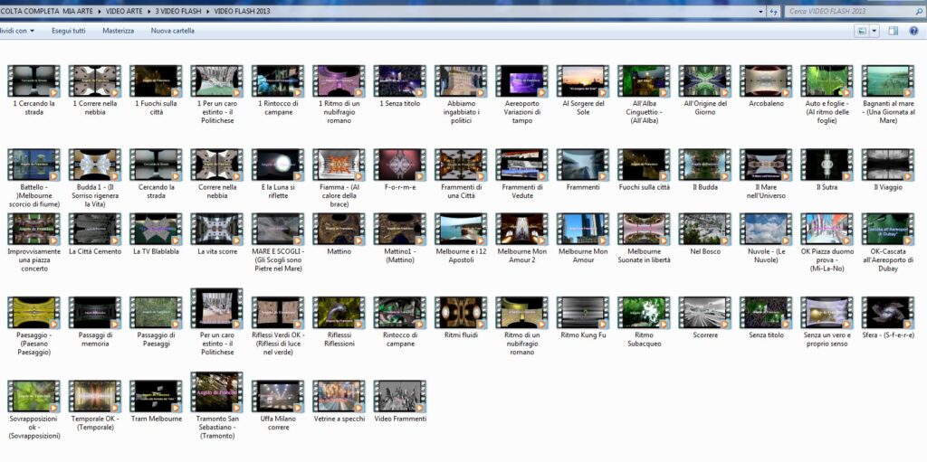 La miglior cosa forse è, guardarla e lasciarsi andare alle sue immagini e suoni.Tutta la mia VideoArte penso, possa essere paragonata agli antichi affreschi rinascimentali in cui l’Artista raccontava la vita del borgo o del Signore presso cui lavorava.